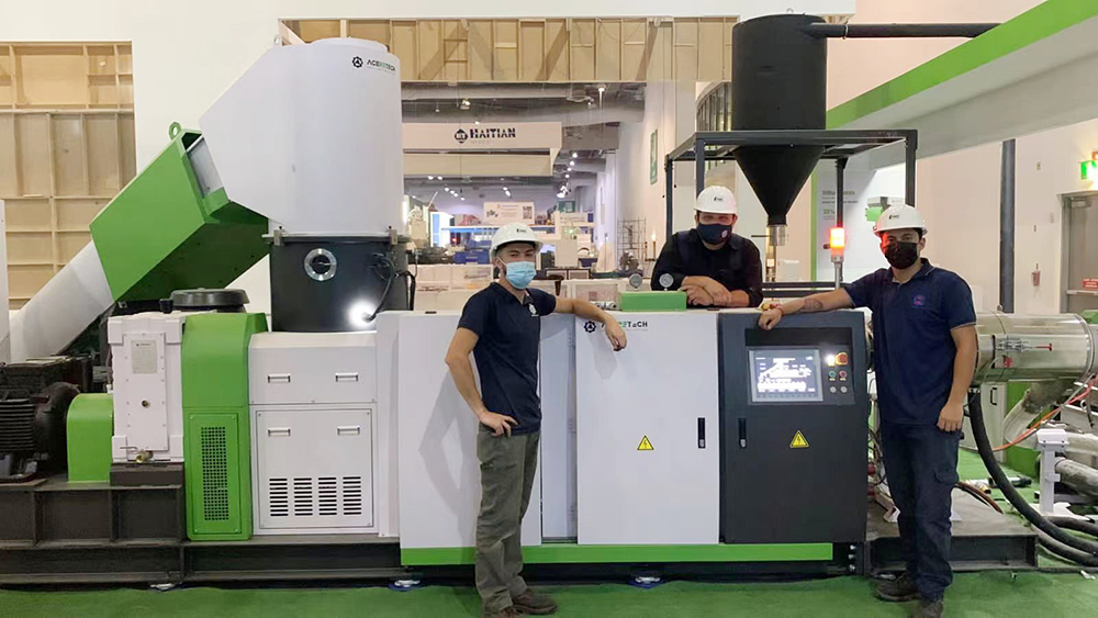 本届博览会取得圆满成功。 直到世博会结束那天,我们成功销售了 3 台以上相同的造粒机。 因为每天我们都有一个使用PE薄膜的造粒机进行现场演示,这吸引了很多参观者。 这些是非常重要的时刻,经过我们团队的大量工作,我们可以记住这些时刻。