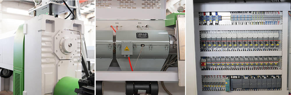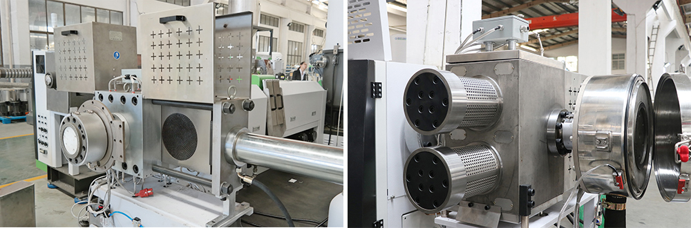 压实仓和挤出机料筒之间安装有伺服电机的滑门,用于控制薄膜的进料量。