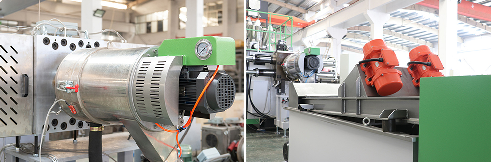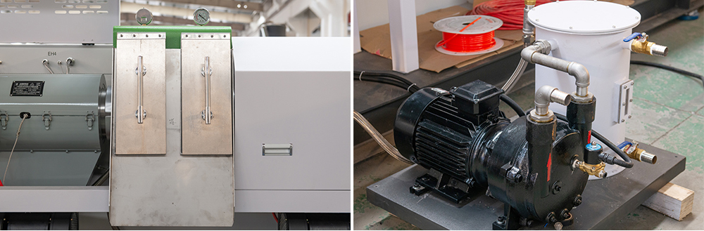 真空系统采用双真空设计,可有效分离熔体中的小分子挥发物和水分。 专门设计的真空罐将提取的小分子挥发物和水收集过滤,保证回收车间的清洁和VOCs的排放。