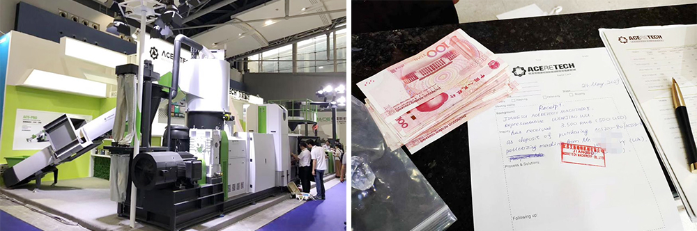 展会结束的第二天和第三天,有客户专门从广州赶到我们公司视察工厂。参观完我们的工厂之后,他们非常满意。有两位客户直接给了现金预定机器。