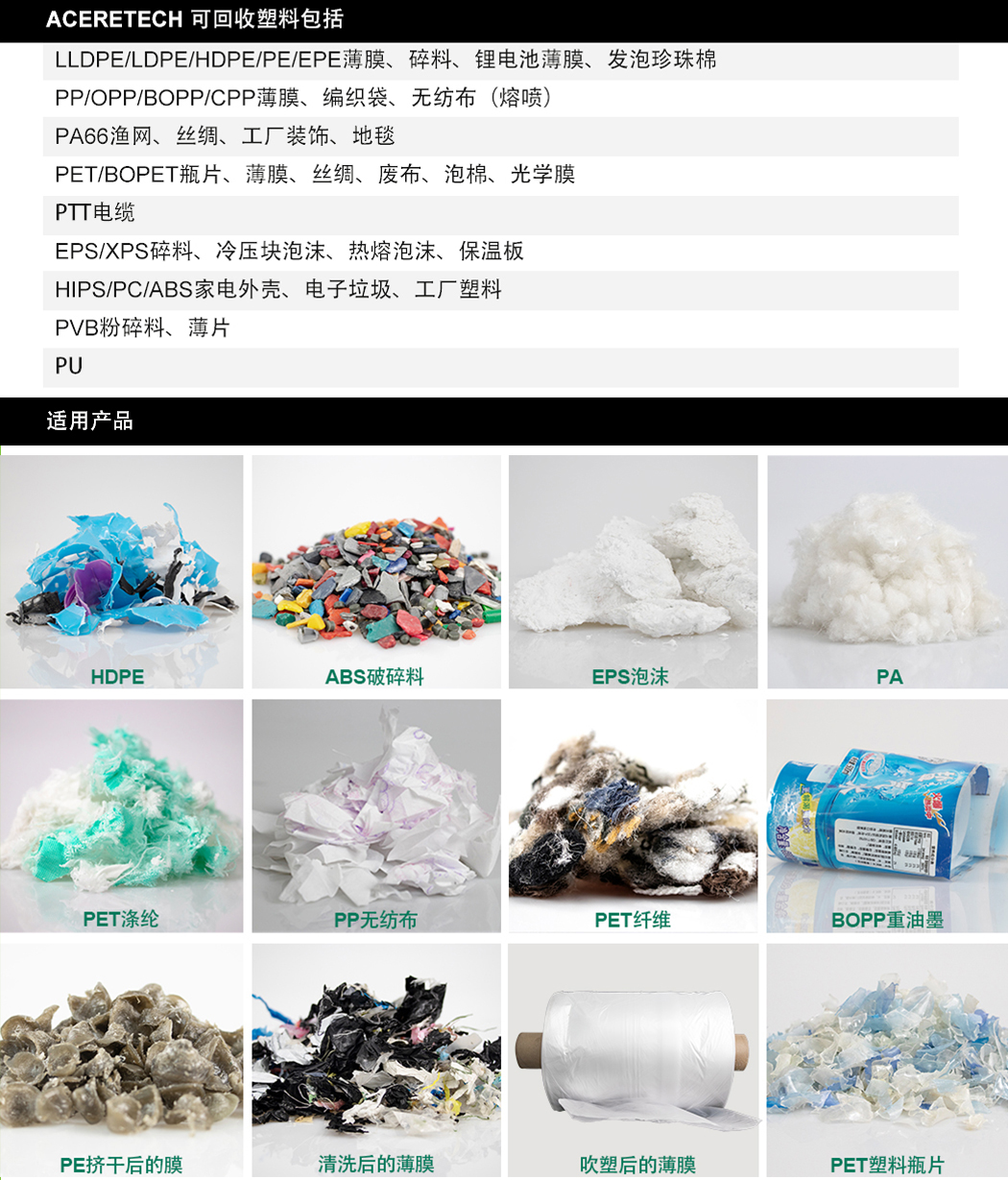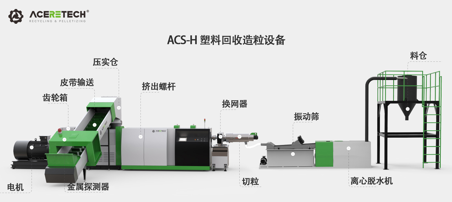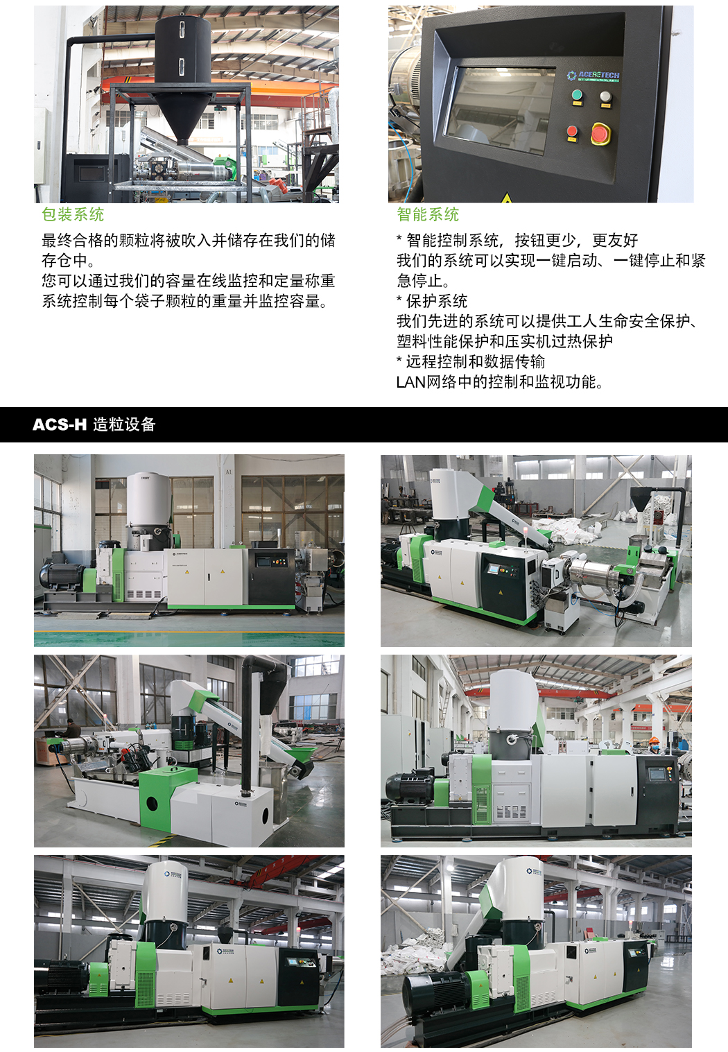 为适应市场需求,ACERETECH研发并推出环保型三合一塑料造粒回收一体化系统——ACS-H压实造粒机。