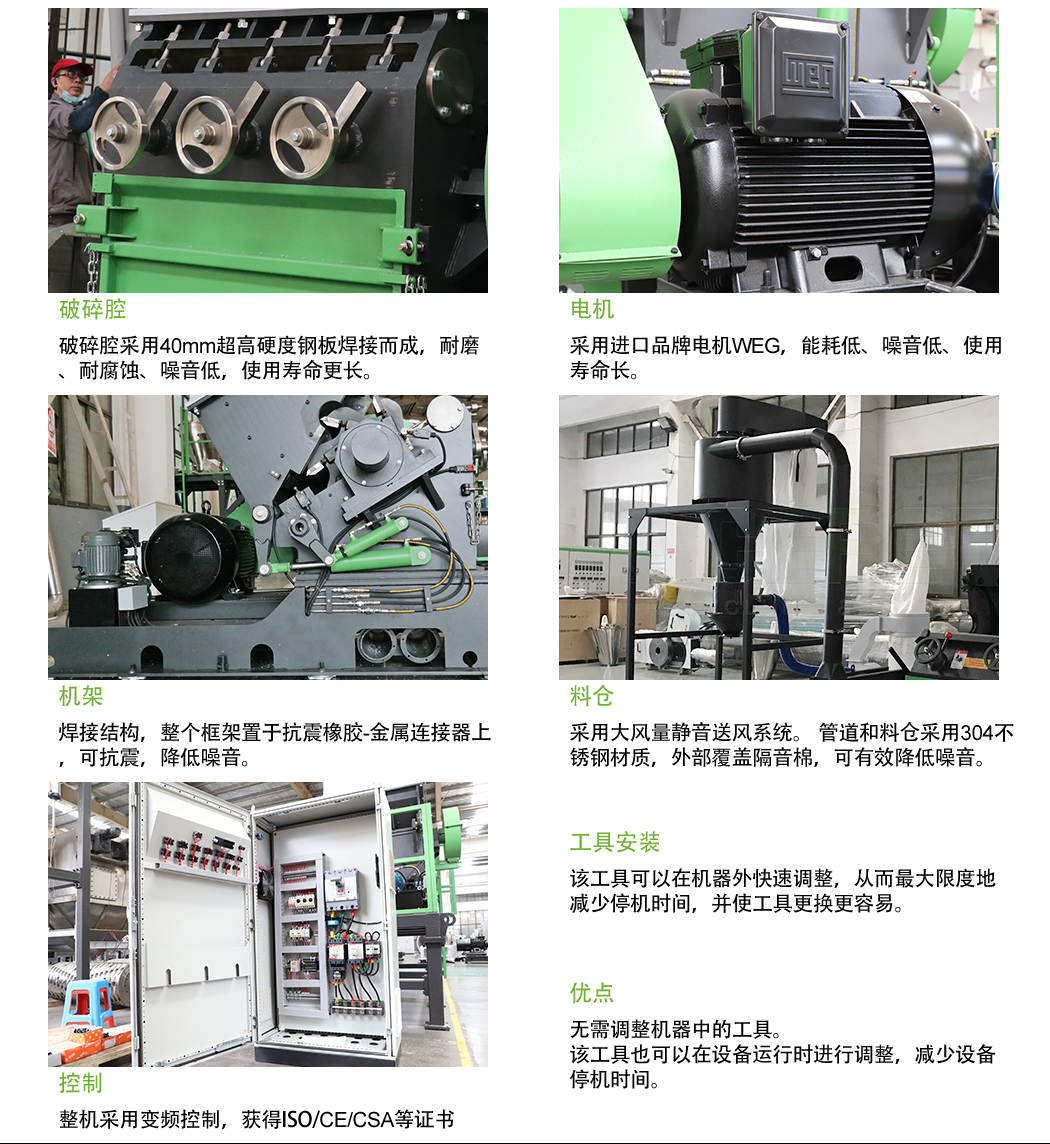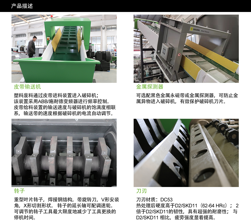 GH重型破碎机广泛用于型材、管材、薄膜、片材、大块硬块等的粉碎。